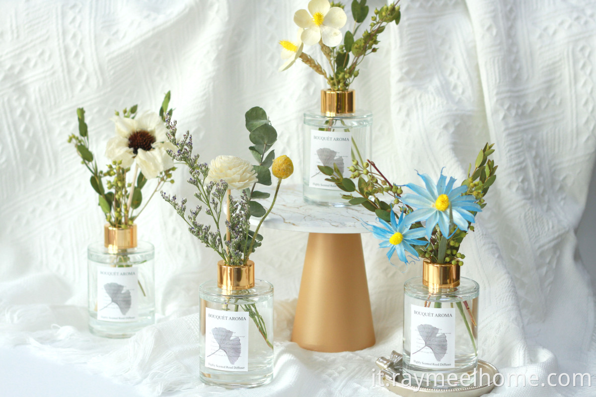 Round Bottle Reed Diffuser With Bouquet Flowers